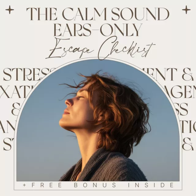 Download your copy of “The Calm Sound Ears-Only Escape Checklist” today and start creating your peaceful, focused, and calm listening environment. Unlock the power of soothing sounds and feel the difference in your mood and productivity. Don’t wait—download now and transform your day with the perfect soundtrack for relaxation!